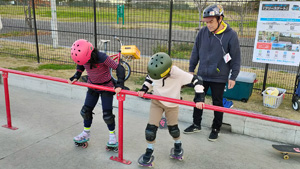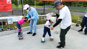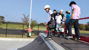 | ・レンタルスケート(有料):インラインスケート、2点プロテクター、ヘルメット 大人1回500円、中学生以下1回300円 *レンタルスケートは数に限りがあります。 |