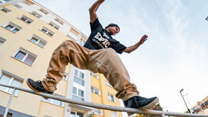 | 近年ヨーロッパを中心に手すりや縁石等などを使ってグラインド(靴底を滑らせる)する専用のスニーカーが広まっています。土踏まずの部分が滑る特殊なプラスチックになっていて、そこで滑ります。パルクールとジョイントするなど、用途が広がっています。 | |||||||||||||||||||||||||||||||||||||||||||||||||||||