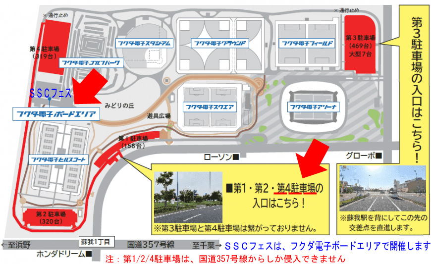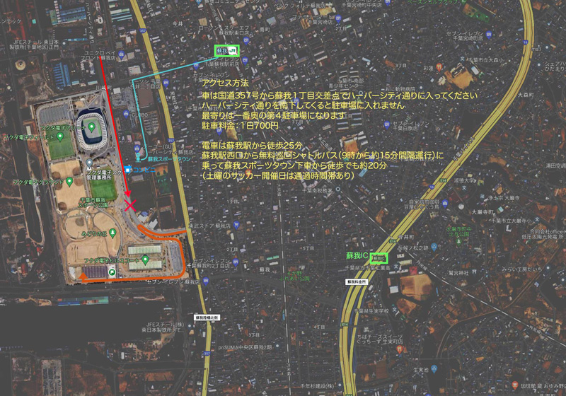 | 車 :千葉市蘇我スポーツ公園 第4駐車場 319台 (1日700円) | |||||||||||||||||||||||||||||||||||||||||||||||||||||