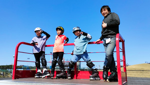 | ・レンタルスケート(有料):インラインスケート、2点プロテクター、ヘルメット 大人1回500円、中学生以下1回300円 *レンタルスケートは数に限りがあります。 |