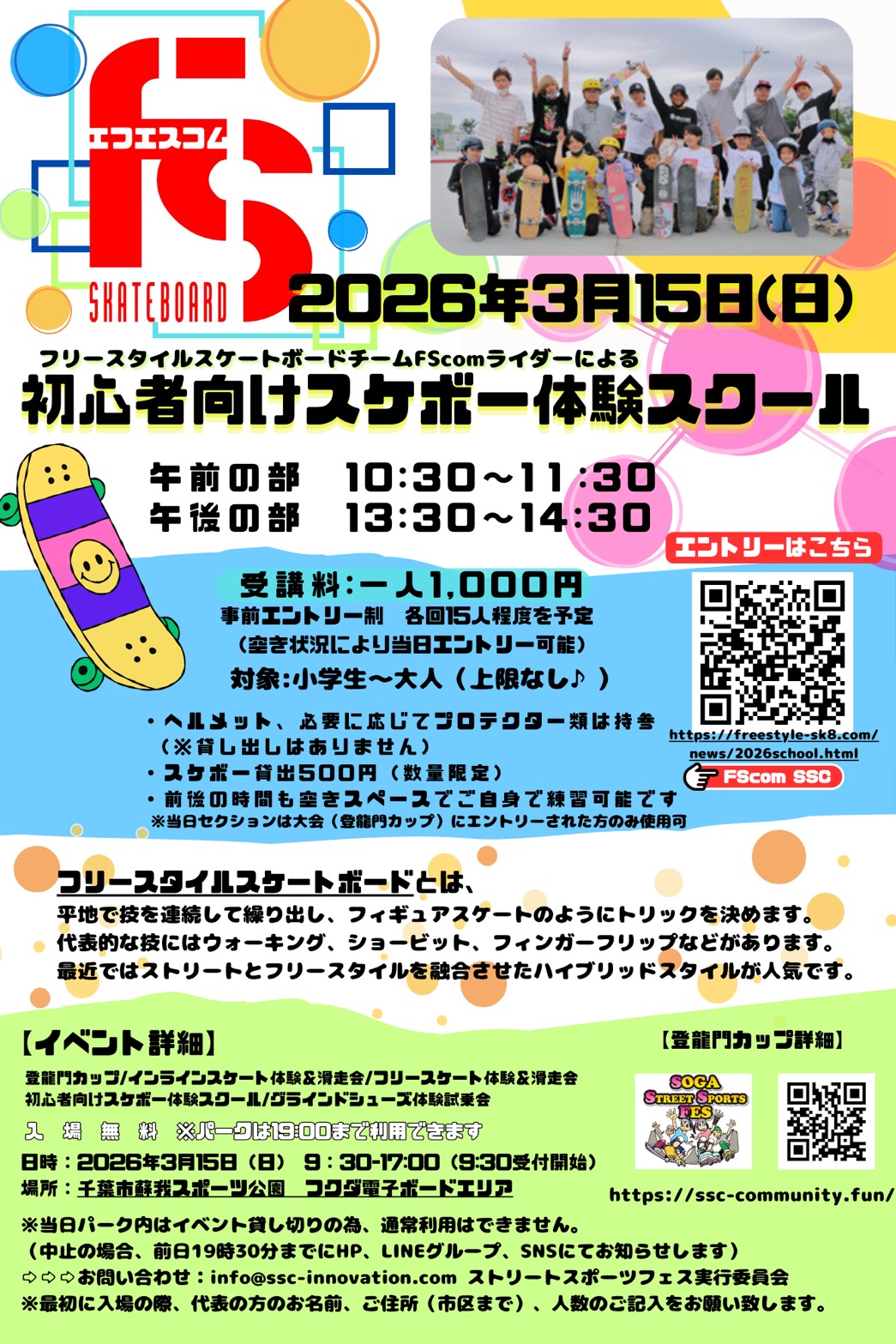| フリースタイルスケートボードの第一人者、YoutubeチャンネルFScomでも有名なフジイアニ氏他のスクールを開催! | |||||||||||||||||||||||||||||||||||||||||||||||||||||